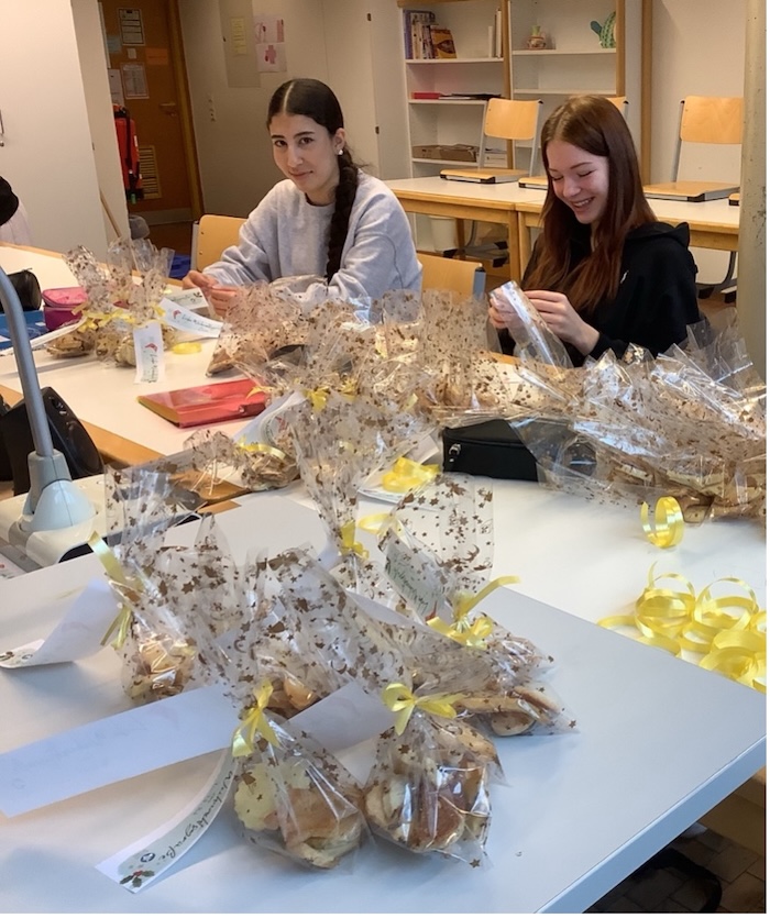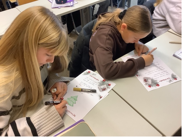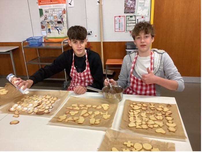 Die AES-Gruppe der Klasse 7c begeisterte mit Plätzchen und Weihnachtskarten