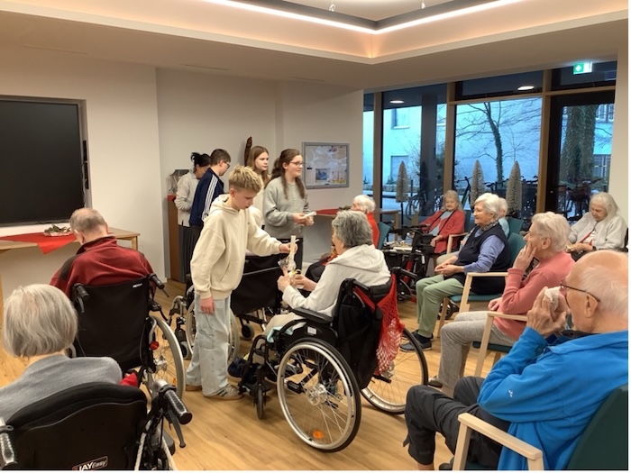 Durch den Besuch entstand eine festliche Atmosphäre, die den Bewohnerinnen und Bewohnern des Pflegeheims große Freude bereitete. Gleichzeitig erhielten die Schülerinnen und Schüler einen wertvollen Einblick in den Alltag der Pflegeeinrichtung und erkannten, wie wichtig Wertschätzung und kleine gute Taten sind.