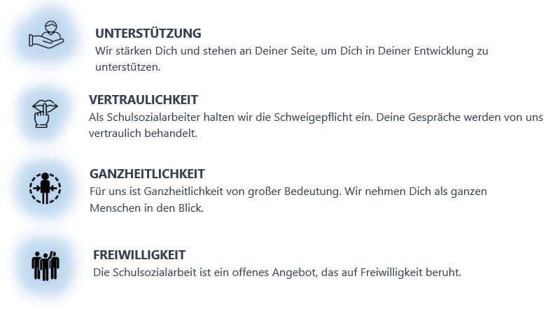 Hier bist Du richtig, wenn Du Unterstützung, Rat oder einfach jemanden zum Reden suchst. Die Schulsozialarbeit ist ein Angebot der Jugendhilfe und bietet ein offenes Ohr für alle Schülerinnen und Schüler, Eltern und Erziehungsberechtigte, Lehrerinnen und Lehrer.